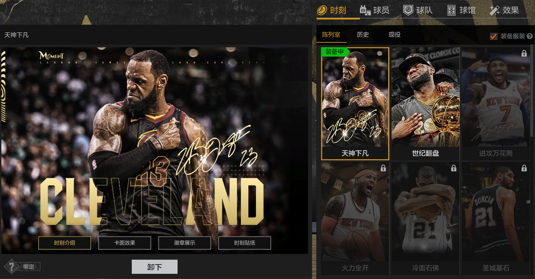 装备描述:【10突双时刻詹】【天神下凡】【世纪翻盘】【强硬防守】【暴力劈扣】