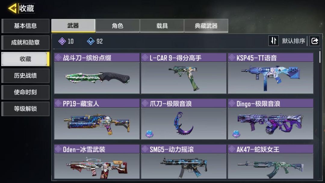 10史诗武器3人物3载具、3战斗刀-缤纷点缀、L-CAR9-得分高手、KSP45-TT语音、PP19