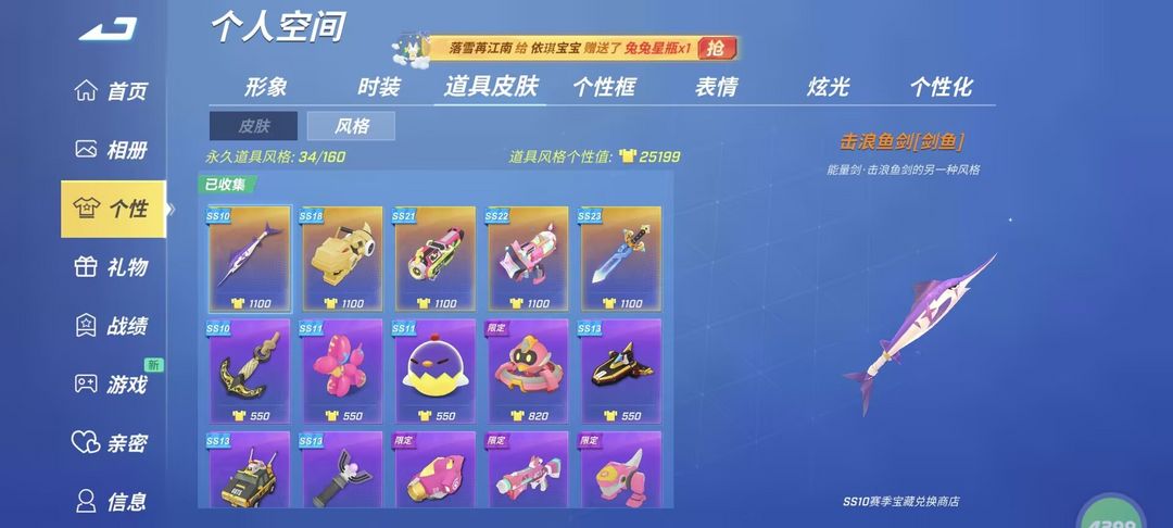 4399逃跑号❤️119万个性12金皮冰王子红蜘蛛❤️击浪鱼剑手柄像素炮禁言